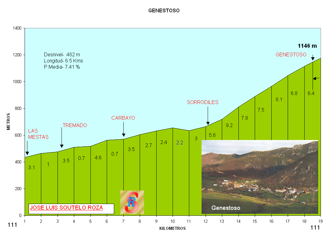 La ascension en si, empieza en Sorrodiles aunque 1 km antes del cruce de GENESTOSO y VALLADO es donde empieza la subida.